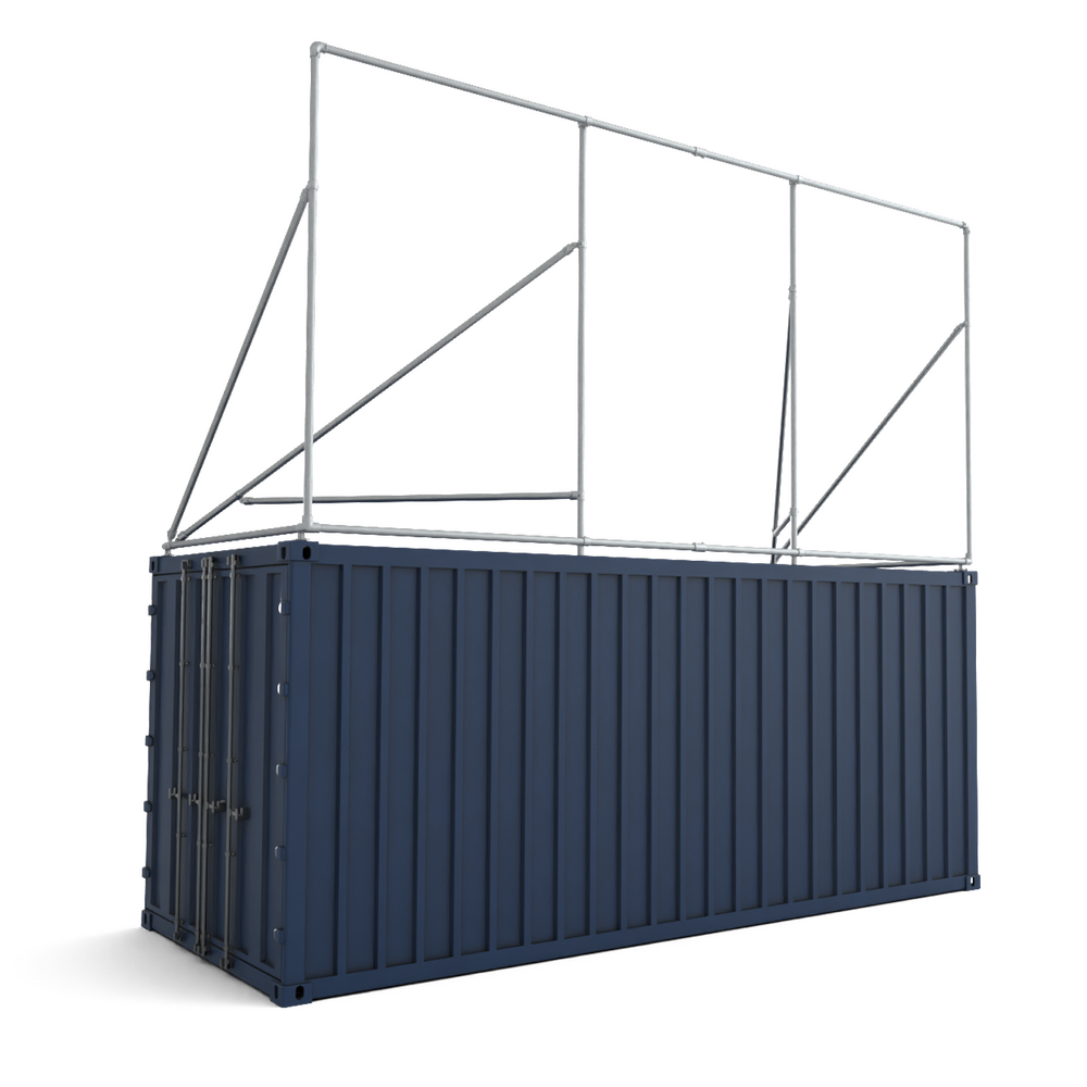 Containerframe lange zijde boven container uit, incl. doek en elastieken