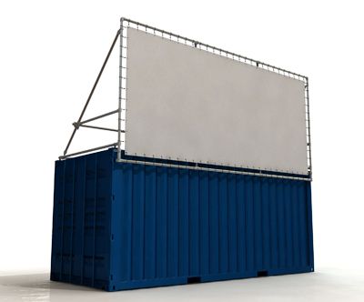 Containerframe lange zijde boven container uit, incl. doek en elastieken.