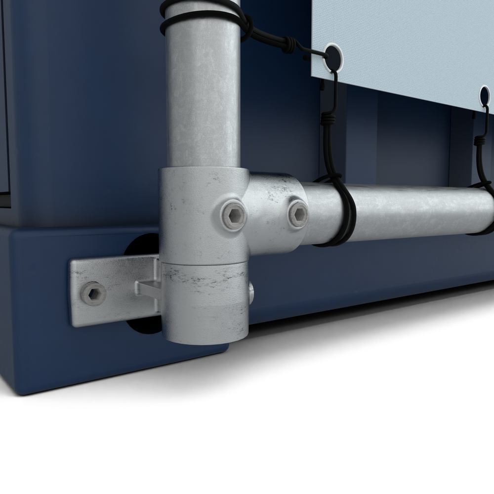 Dit frame is geschikt voor een 20ft container. Dit frame is vervaardigd uit 48,3mm aluminium buizen en koppelingen en wordt geleverd met bevestigingsmateriaal.