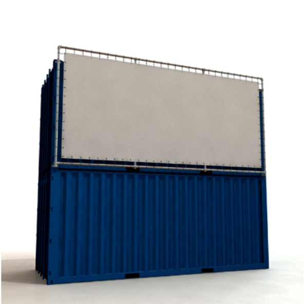 Containerframe lange zijde op 2 gestapelde containers, incl. doek en elastieken.