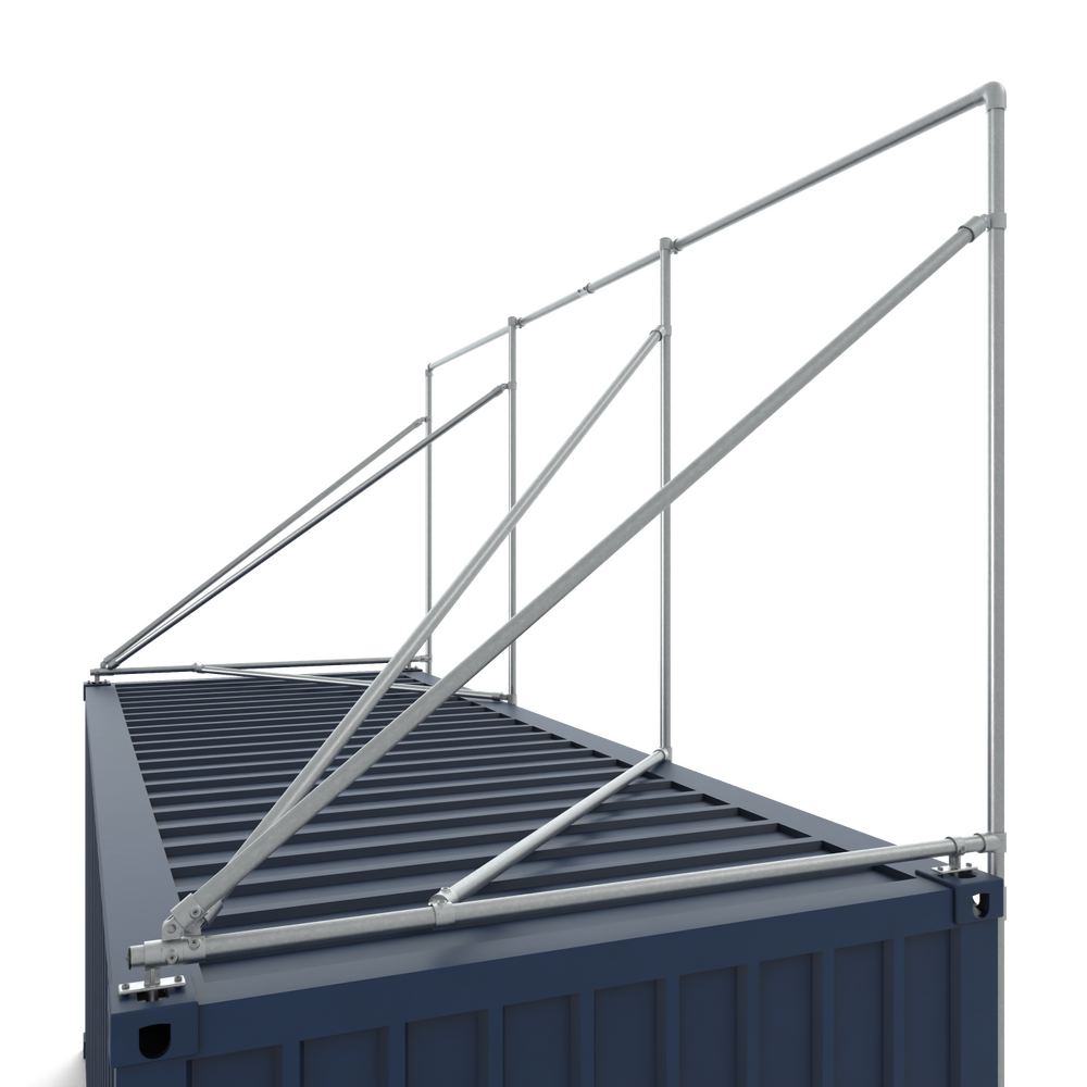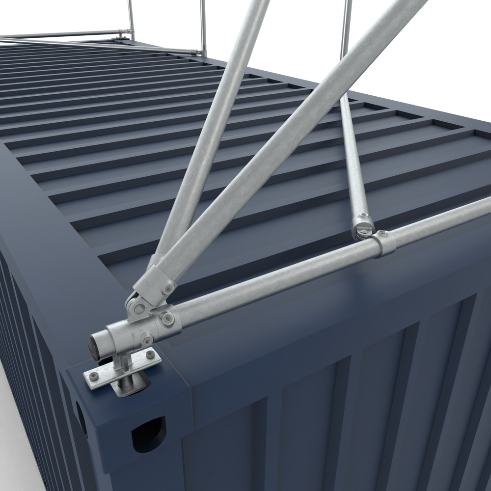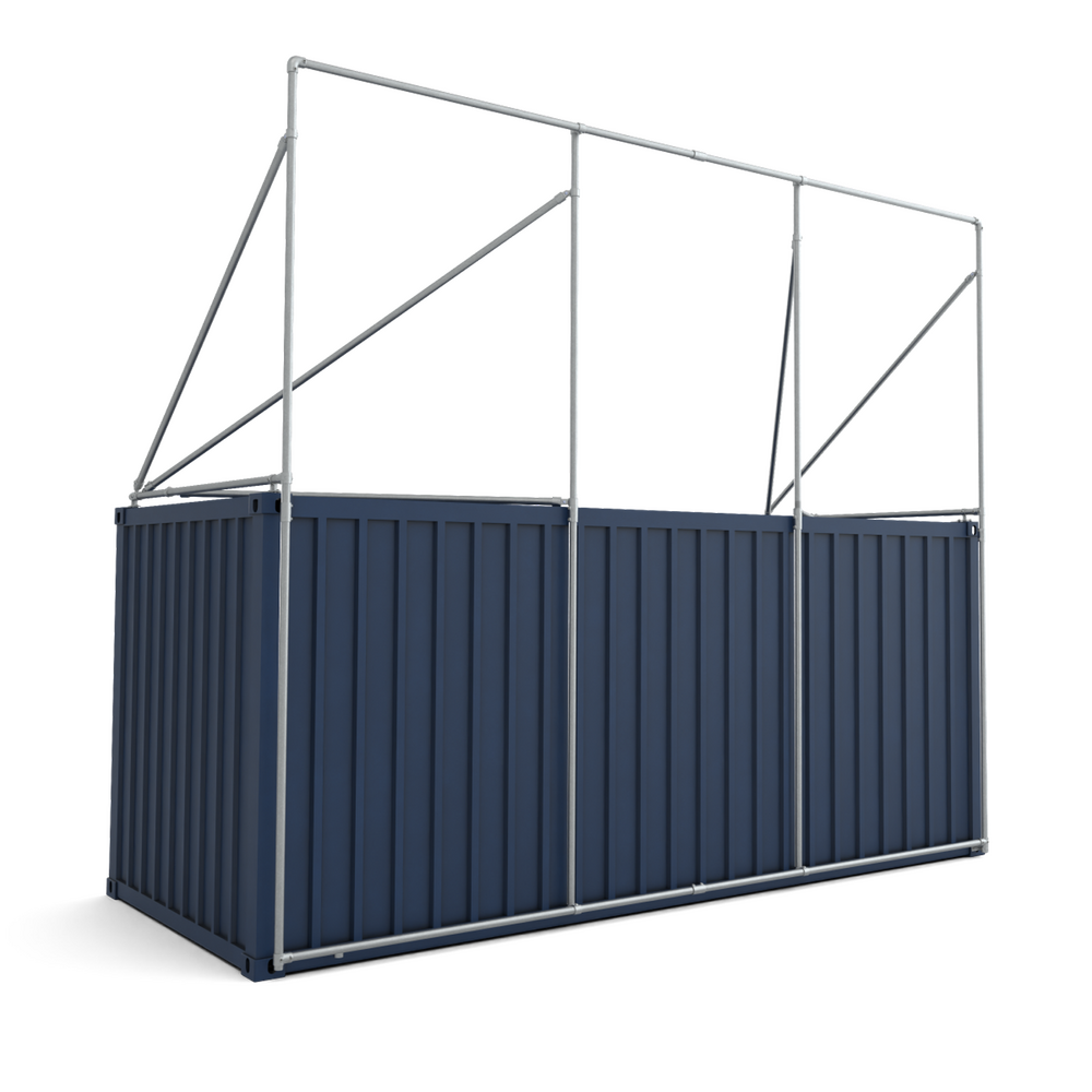Dit frame is geschikt voor een 20ft container. Dit frame is vervaardigd uit 48,3mm aluminium buizen en koppelingen en wordt geleverd met bevestigingsmateriaal.
