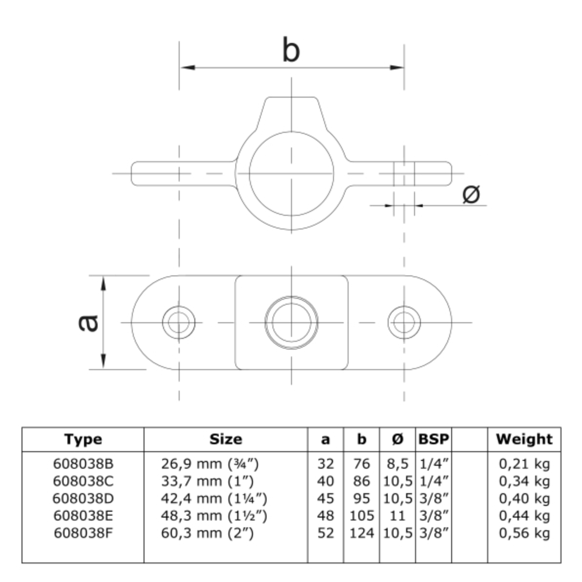 Deze buiskoppeling wordt gebruikt voor het monteren van panelen en planken. De koppeling heeft twee ogen op dezelfde as. Wordt ook vaak toegepast voor de bevestiging van panelen.| Diameter: | 26,9mm |