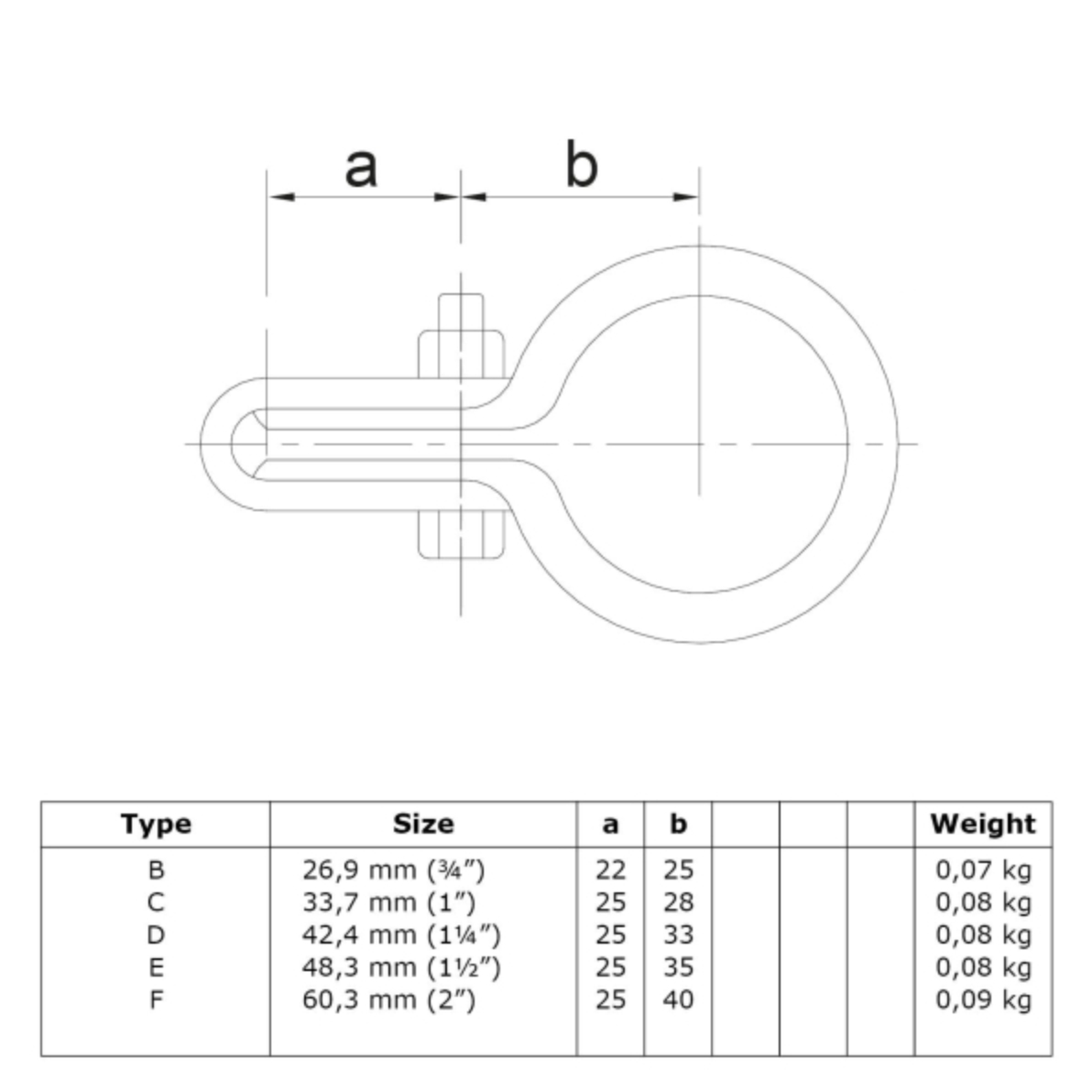 Enkelzijdige verzinkte gaasklem. Buiskoppeling is er ook in dubbelzijdige uitvoering type 71 Wordt ook vaak gebruikt voor het monteren van dunne plaatmaterialen.