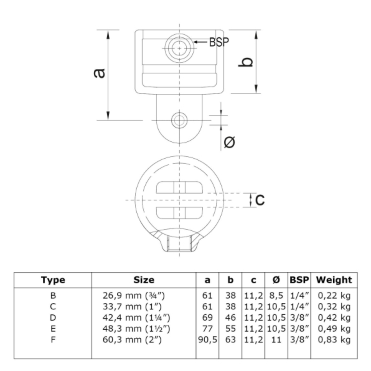 Huls ten behoeve van de diverse scharnierstukken, wordt doorgaans niet alleen gebruikt. De buiskoppeling is vast te zeten met 1 inbusbout. Dit is het vrouwelijk gedeelte van de combinatiekoppelingen, type 36 en 38.Diameter: | 42,4mm |