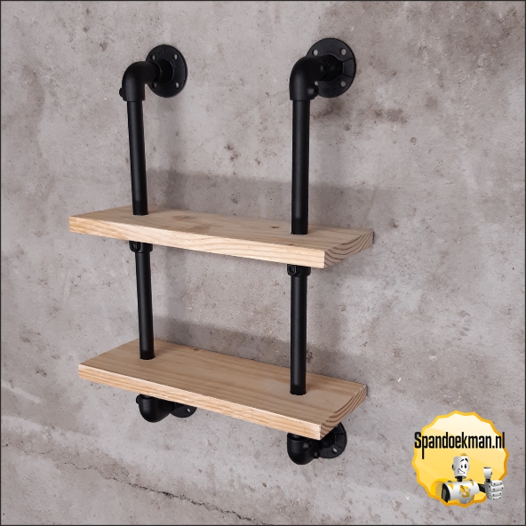 Industrieel Wandrek zwart met 2 planken 21,3mm