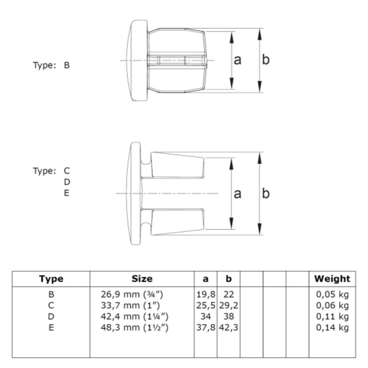Zware metalen inslagdop voor het afsluiten van buisuiteinden. Deze inslagdop is bruikbaar in combinatie met steigerbuizen. Voor gebruik binnen en buitenshuis!| Diameter: | 26,9mm |