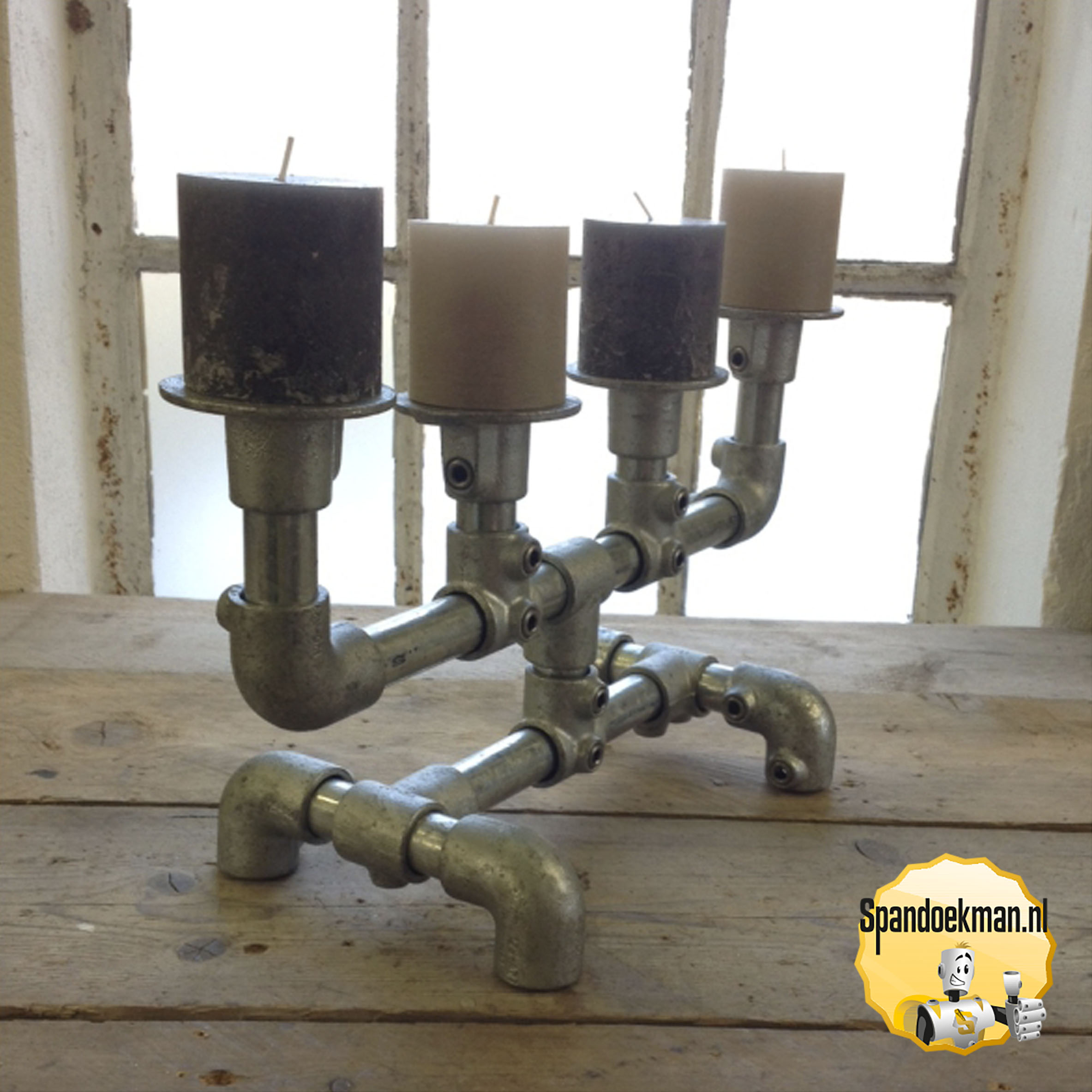 Compleet bouwpakket voor het maken van een kandelaar. Deze kandelaar is gemaakt van steigerbuizen en buiskoppelingen, daardoor krijgt het product een mooie industriële uitstraling. Breedste deel: 42cm, Diameter van de buizen: 26,9mm. Inclusief inbussleutel.| Dikte: | 26,9mm |