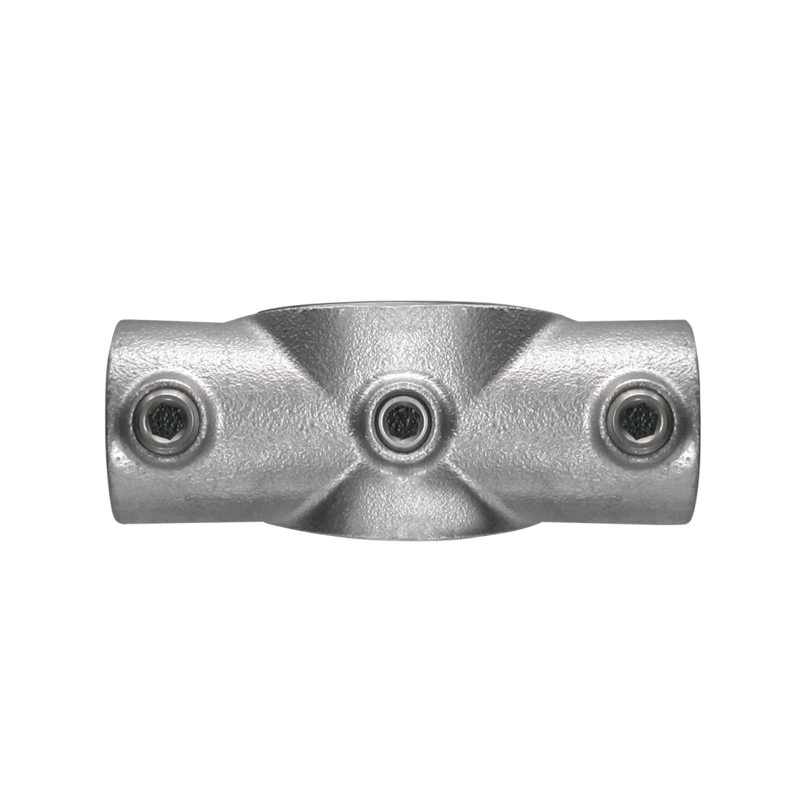 Deze buiskoppeling is een variabele verbindingsklem tussen de middenreling en de relingstijlen voor hoeken tussen de 0 -11 graden. Te gebruiken bij relingen of soort gelijke constructies. Deze koppeling is bedoeld om 3 steigerbuizen met elkaar te verbinden, waarbij er 1 buis in zijn geheel door de koppeling loopt.| Diameter: | 42,4mm |