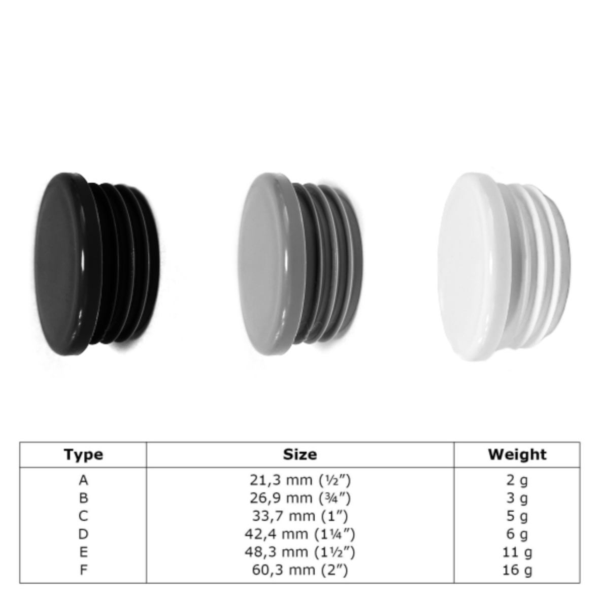 Kunststof inslagdop voor het afsluiten van buisuiteinden. Verkrijgbaar in verschillende diameters.| Diameter: | 48,3mm |