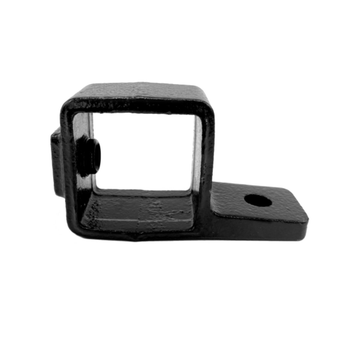 Zwarte vierkante buiskoppeling Oogdeel enkele lip type 55S. Buisklem voor het bevestigen van platen of tafelbladen, voorzien van 1 gat voor de bevestiging. Deze buiskoppelingen zijn ontwikkeld om onder andere panelen te monteren in buisconstructies. Geschikt voor zwarte vierkante steigerbuis van 40x40mm.