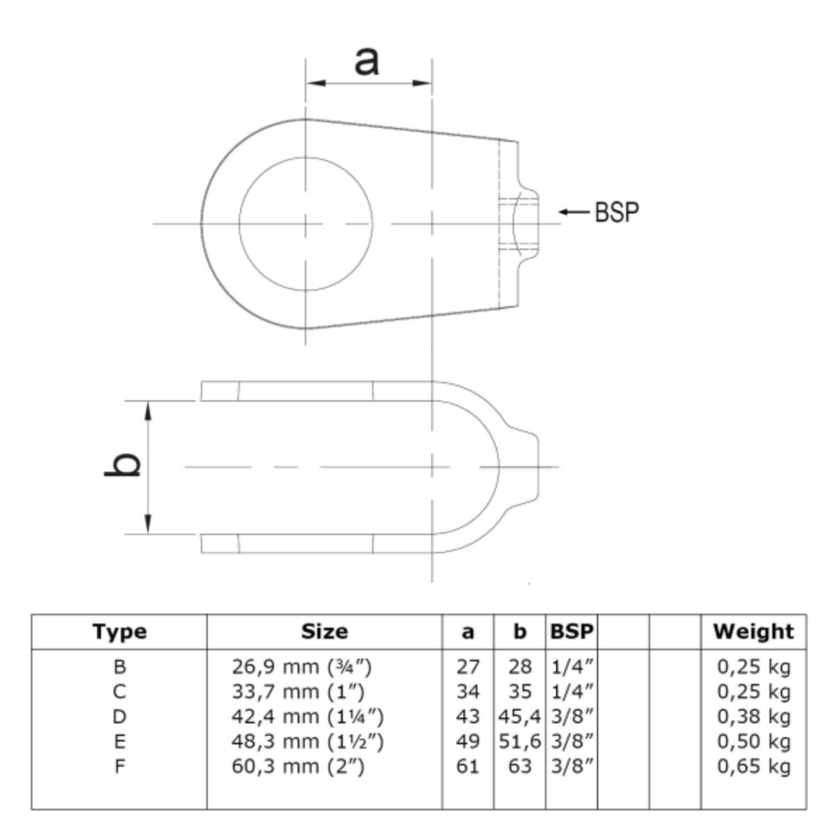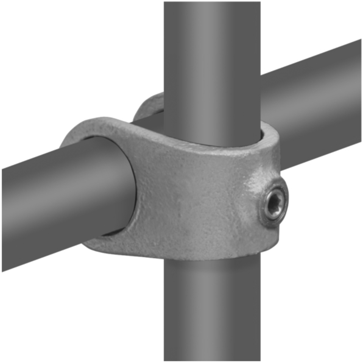 90 graden kruiskoppeling voor het uitbreiden van bestaande constructies, of het verbinden van piketpaaltjes aan de ligger van een vrijstaand frame. Deze buiskoppeling kan ook toegevoegd worden aan een bestaande constructie. Ze geeft een kruisverbinding en kan gebruikt worden als een alternatief voor het Kruistuk. Een constructie geheel met deze koppeling opbouwen wordt sterk ontraden vanwege stabiliteit en sterkte.| Diameter: | 42,4mm |