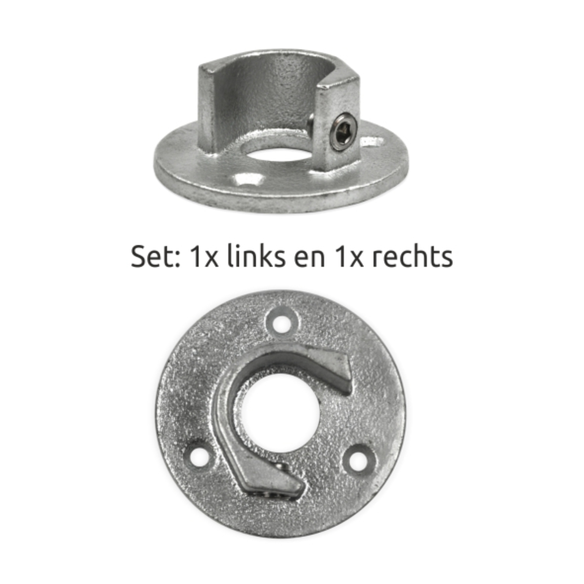 Open ronde voetplaat type 15 - 26,9mm set L+R Steigerbuiskoppeling zilver