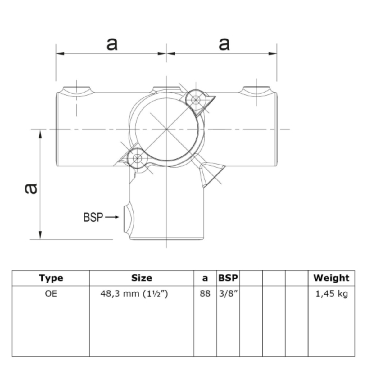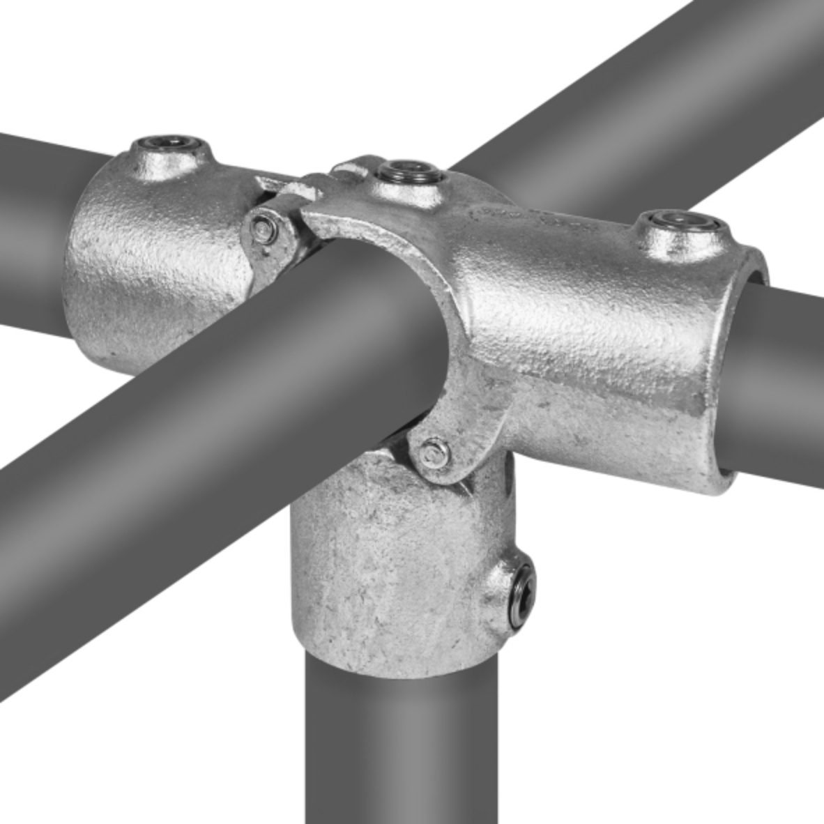 Openklapbaar T-stuk met zij-uitgang type 24O - 48,3mm Steigerbuiskoppeling zilver