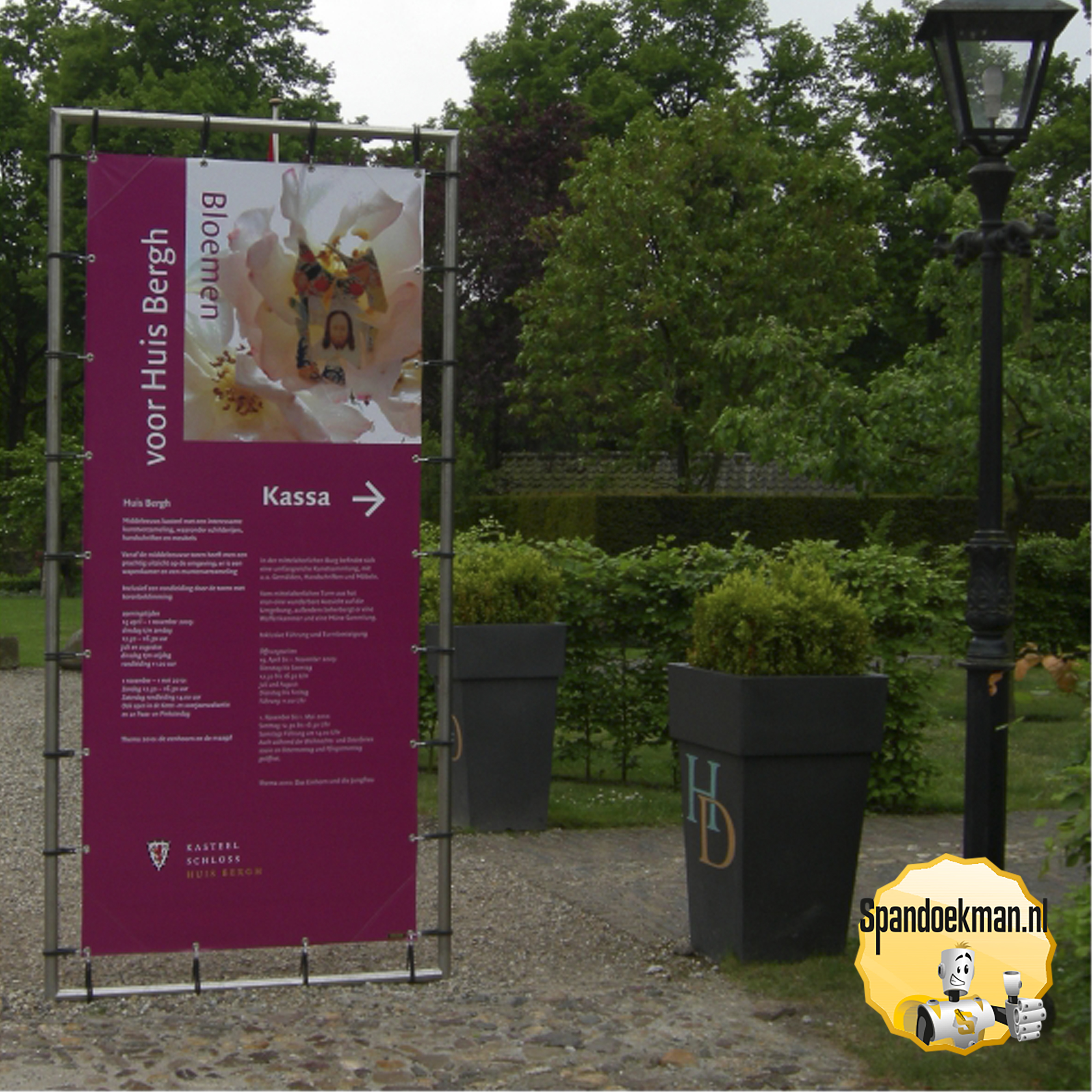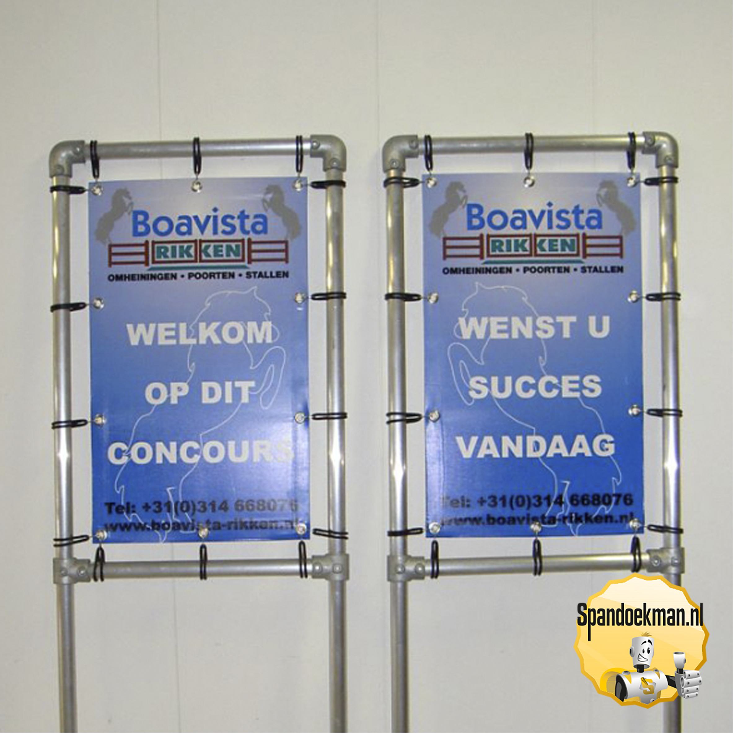 Dit spandoekframe is gemaakt van 33,7mm aluminium buizen en gegalvaniseerde buiskoppelingen. Geef hieronder de buitenmaat van het gewenste spandoekframe aan. U kunt desgewenst direct een spandoek voor in het frame meebestellen.