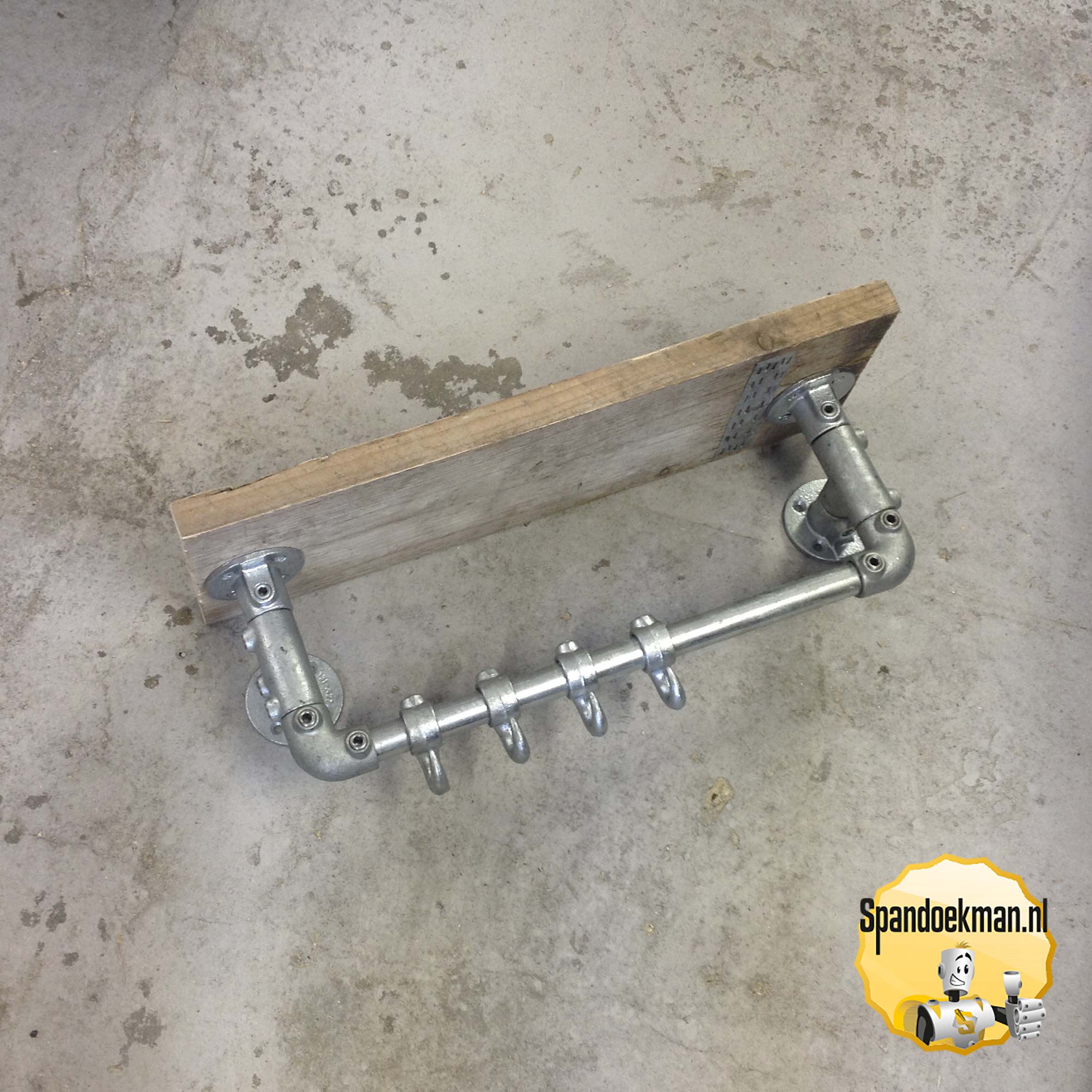 Compleet bouwpakket voor het maken van een Steigerbuis kapstok. De steigerbuizen hebben een buisdiameter van 26,9mm. De kapstok geeft een mooie robuuste industriële uitstraling aan de wand. Alle steigerbuizen zijn op maat gezaagd.