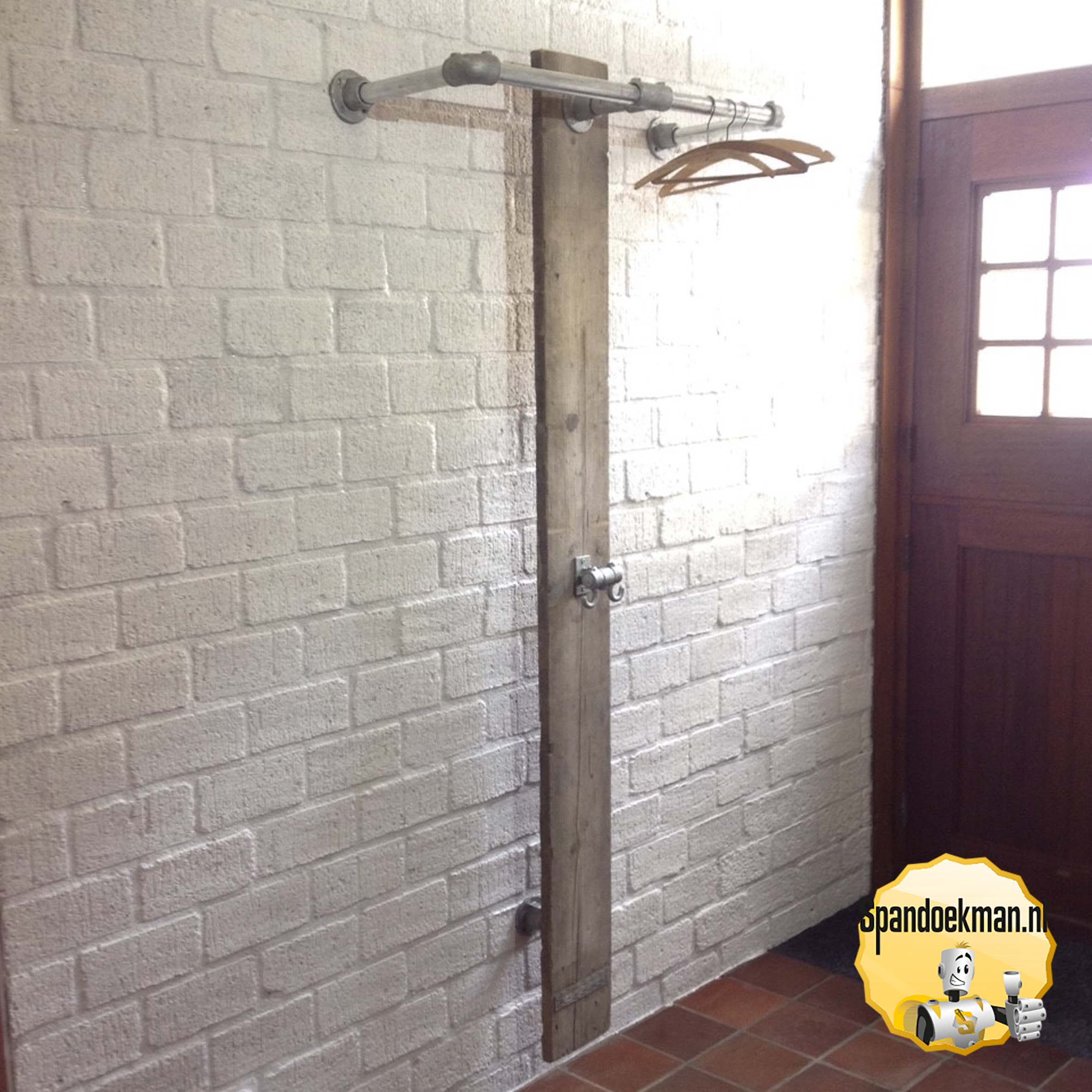Compleet bouwpakket voor het maken van een verticaal gepresenteerde Steigerbuis kapstok. De steigerbuizen hebben een buisdiameter van 26,9mm. De kapstok geeft een mooie robuuste industriële uitstraling aan de wand. Alle steigerbuizen zijn op maat gezaagd. Kapstok wordt geleverd met 1 dubbele kapstokhaak van 26,9mm.