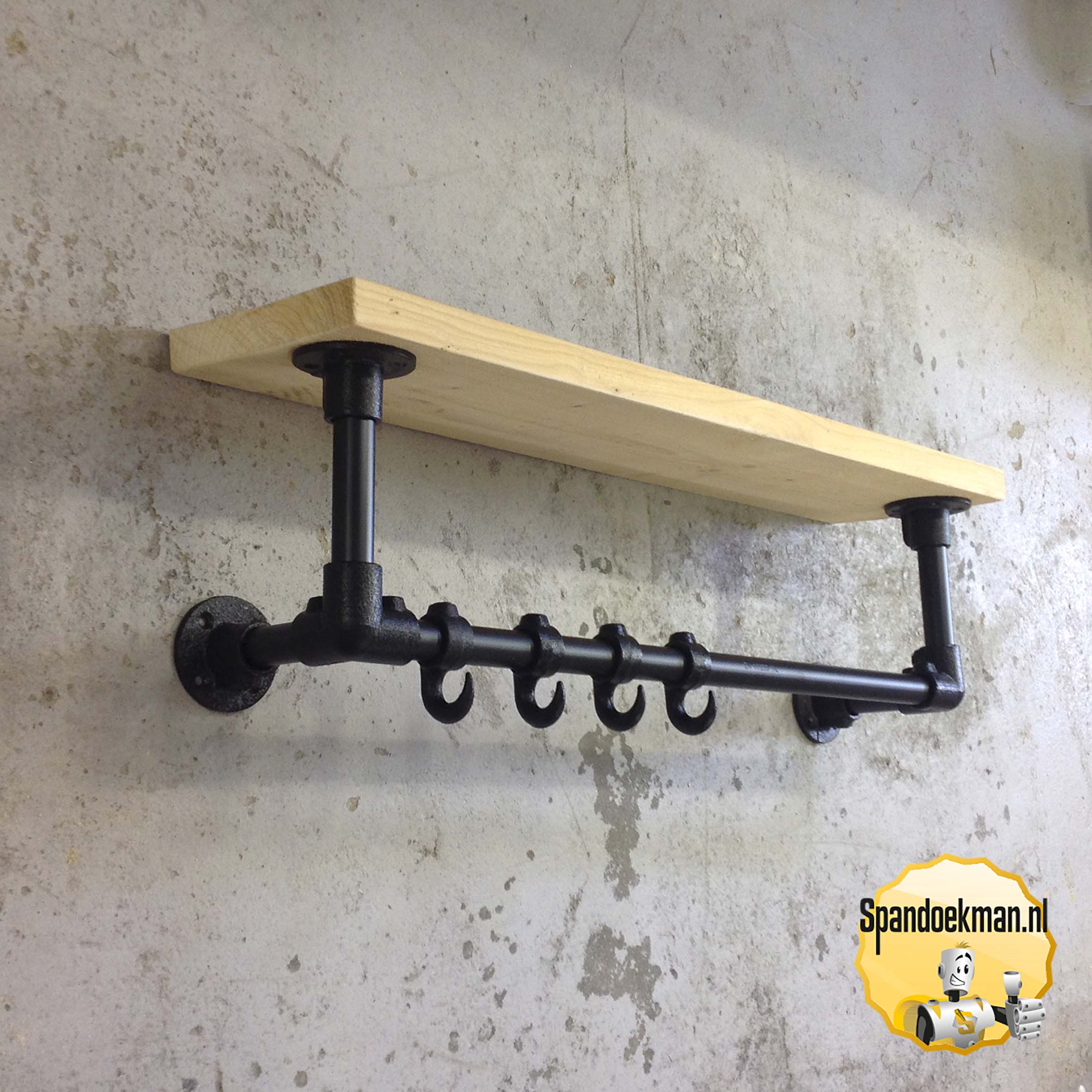Compleet bouwpakket voor het maken van een Steigerbuis kapstok. De steigerbuizen hebben een buisdiameter van 33,7mm. De kapstok geeft een mooie robuuste industriële uitstraling aan de wand. Alle steigerbuizen zijn op maat gezaagd.