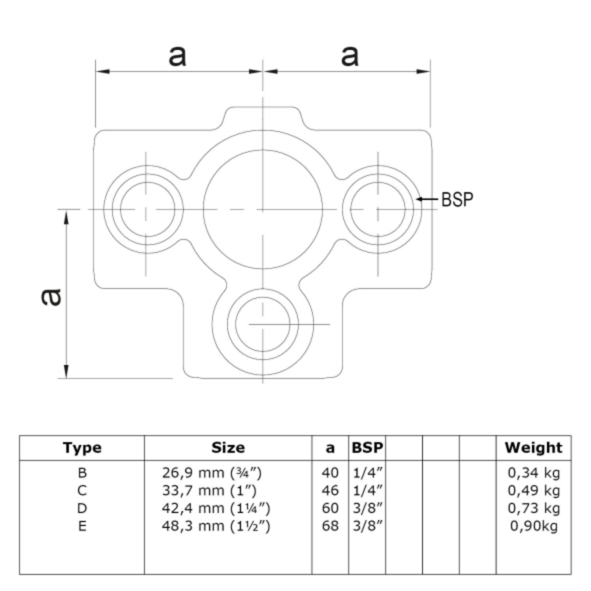 De koppeling is bedoeld voor 4 steigerbuizen, waarbij de horizontale buis in zijn geheel door de klem loopt. Opmerking met betrekking tot gebruik van deze gelakte materialen:Al deze materialen (buis en koppelingen zwart) zijn geschikt voor BINNEN gebruik.Niet voor buiten toepassingen i.v.m. corrosiebestendigheid.Diameter: | 26,9mm |