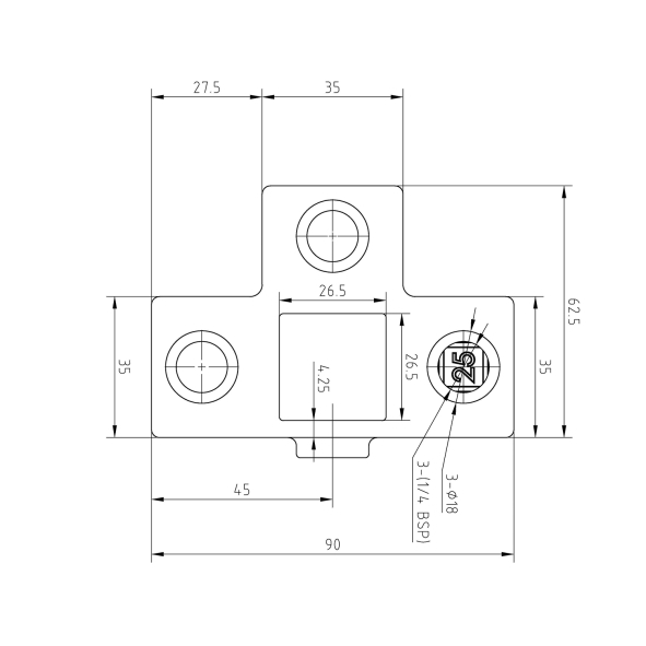 T-stuk met zij-uitgang type 24S - 25mm Steigerbuiskoppeling vierkant zilver
