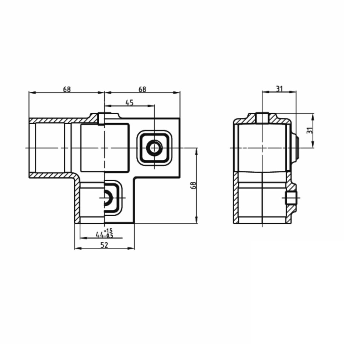 T-stuk met zij-uitgang type 24S - 40mm Steigerbuiskoppeling vierkant zilver